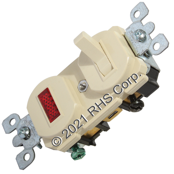 3-WAY POLE SWITCH IS FOR A SET UP WHERE ONE LIGHT IS CONTROLED BY MULTIPLE SWITCHES. IVORY COLORED SWITCH WITH NEON INDICATOR LIGHT.